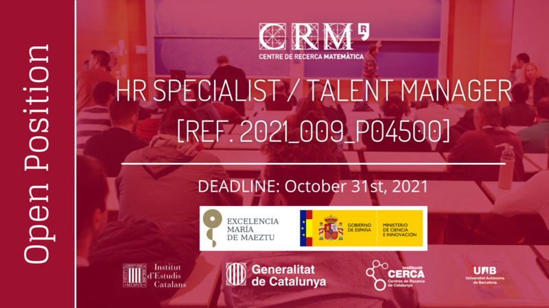 The Centre de Recerca Matemàtica is offering a position as HR Specialist / Talent Manager to work in the institutional project María de Maeztu Unit of Excellence.