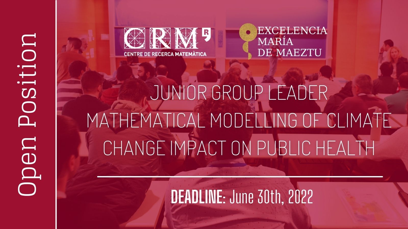 The Centre de Recerca Matemàtica (CRM) is currently seeking a Junior Group Leader in the research area of mathematical modelling of climate change impact on public health. We look for a junior scientist to start an independent research line at world-class standards.